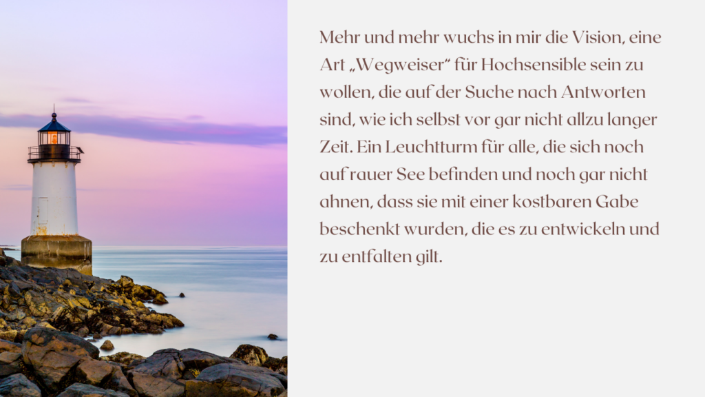 Das ist mir dann auch gelungen, wenn auch eigentlich nicht durch die Ausbildung selbst. Irgendwann stieß ich „zufällig“ auf einen Selbsttest für Hochsensibilität und hatte eine Trefferquote von fast 100 %. In den folgenden Jahren las ich nahezu alles, was ich zu diesem Thema in die Finger bekam und bildete mich entsprechend fort.